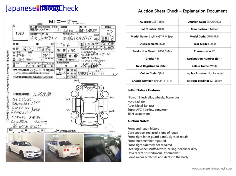 For US$40, you also have the option of requesting an auction sheet search. We will search past auctions for a copy of your vehicle’s auction sheet, which can not only provide the odometer reading, but also the general condition of the vehicle. It will give you with an insight into whether or not the vehicle has previously had any accident repairs or signs of visible rust, among many other things. If you request an auction sheet search, we will refund you in the event that we’re unable to locate any information.